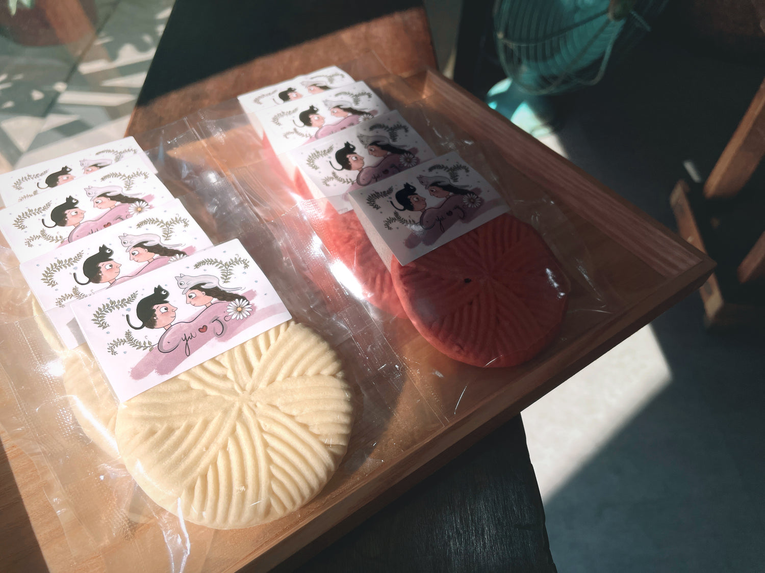 椪餅跟迷你水果餅都可以蓋上客製圖章,給對方一個大大的驚喜,創造出獨一無二的專屬限定小物吧!