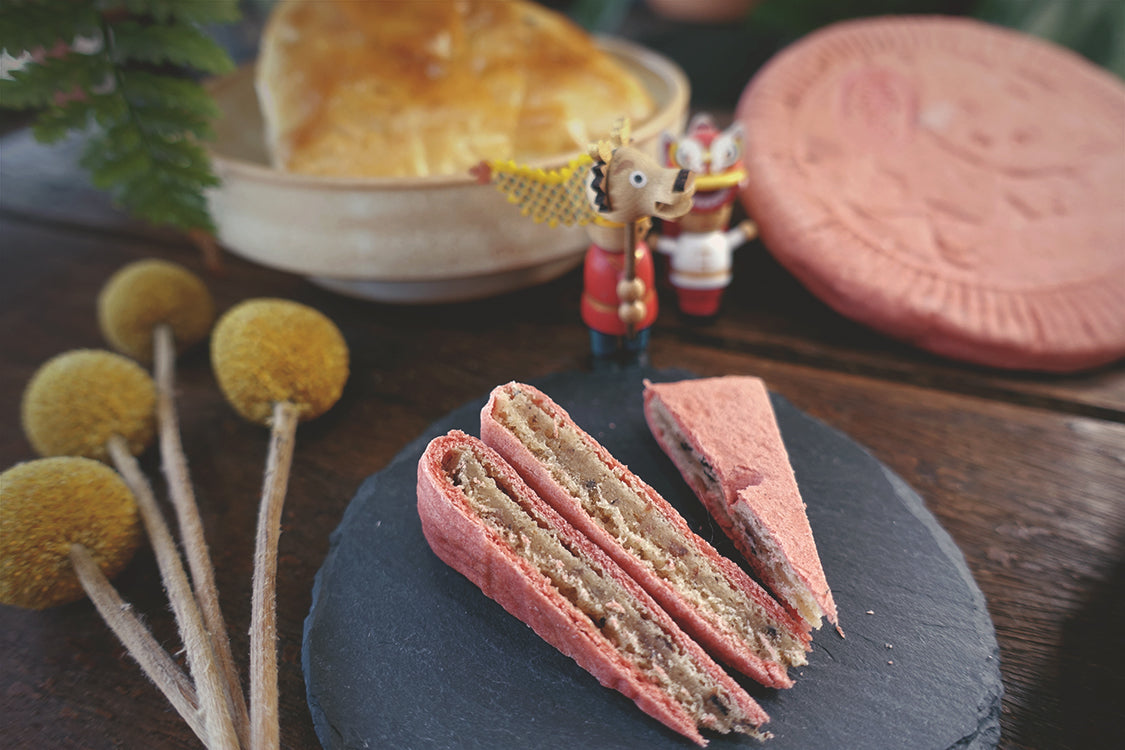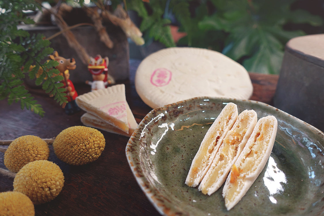 水果餅揮別一般傳統中式糕點的刻板印象,內餡以蕃薯泥為基底,而非一般常見的豆沙,再添加不同的水果泥及果乾,呈現低油減糖的清爽食感。常溫直接吃,口感鬆軟綿密,烘烤加熱吃,餅皮微酥內餡香氣四溢,美味更上好幾層。